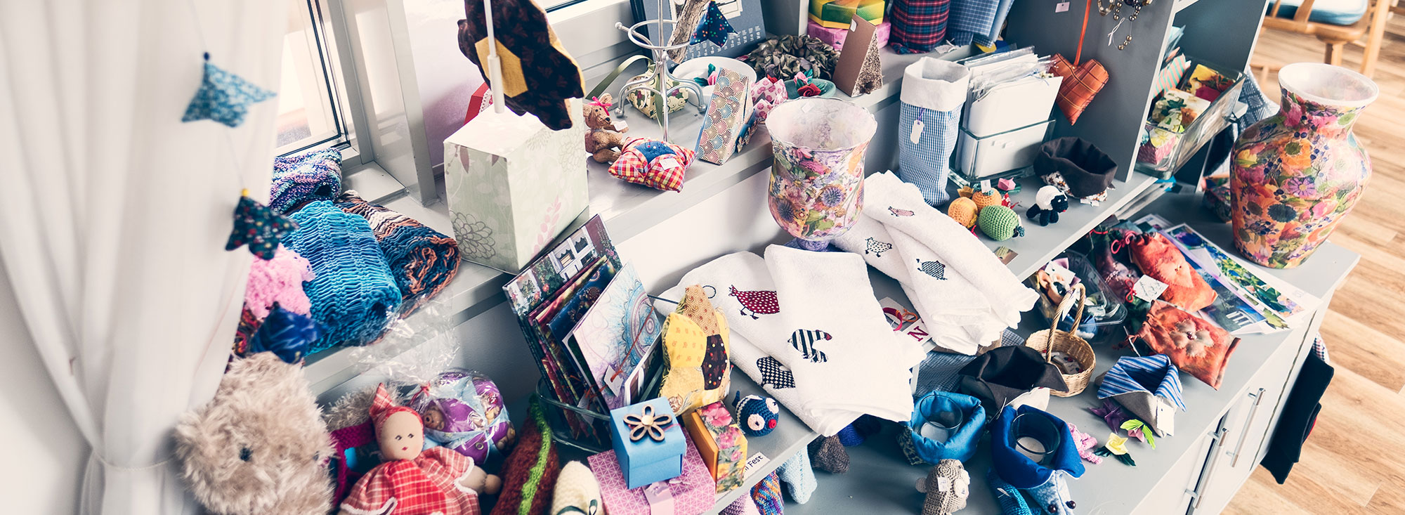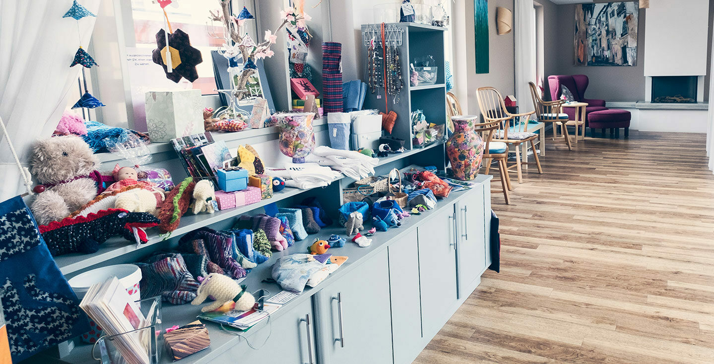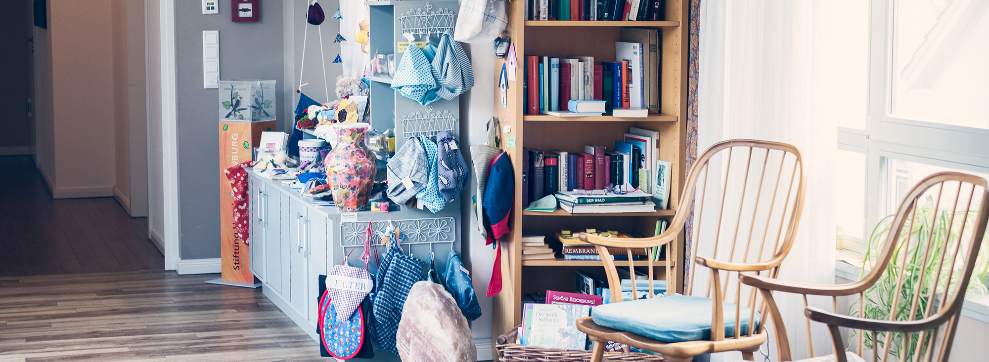 In unserem gemütlichen Wohnzimmer in der ersten Etage betreibt eine Gruppe engagierter Frauen um Frau Pille das Hospiz-Lädchen. Bewohner und Besucher sind dort jederzeit herzlich eingeladen, zu stöbern, sich umzuschauen und die komplett in Handarbeit hergestellten, schönen und nützlichen Dinge selbstverständlich auch käuflich zu erwerben. Die Erlöse kommen zu 100 % unserem Haus zugute.